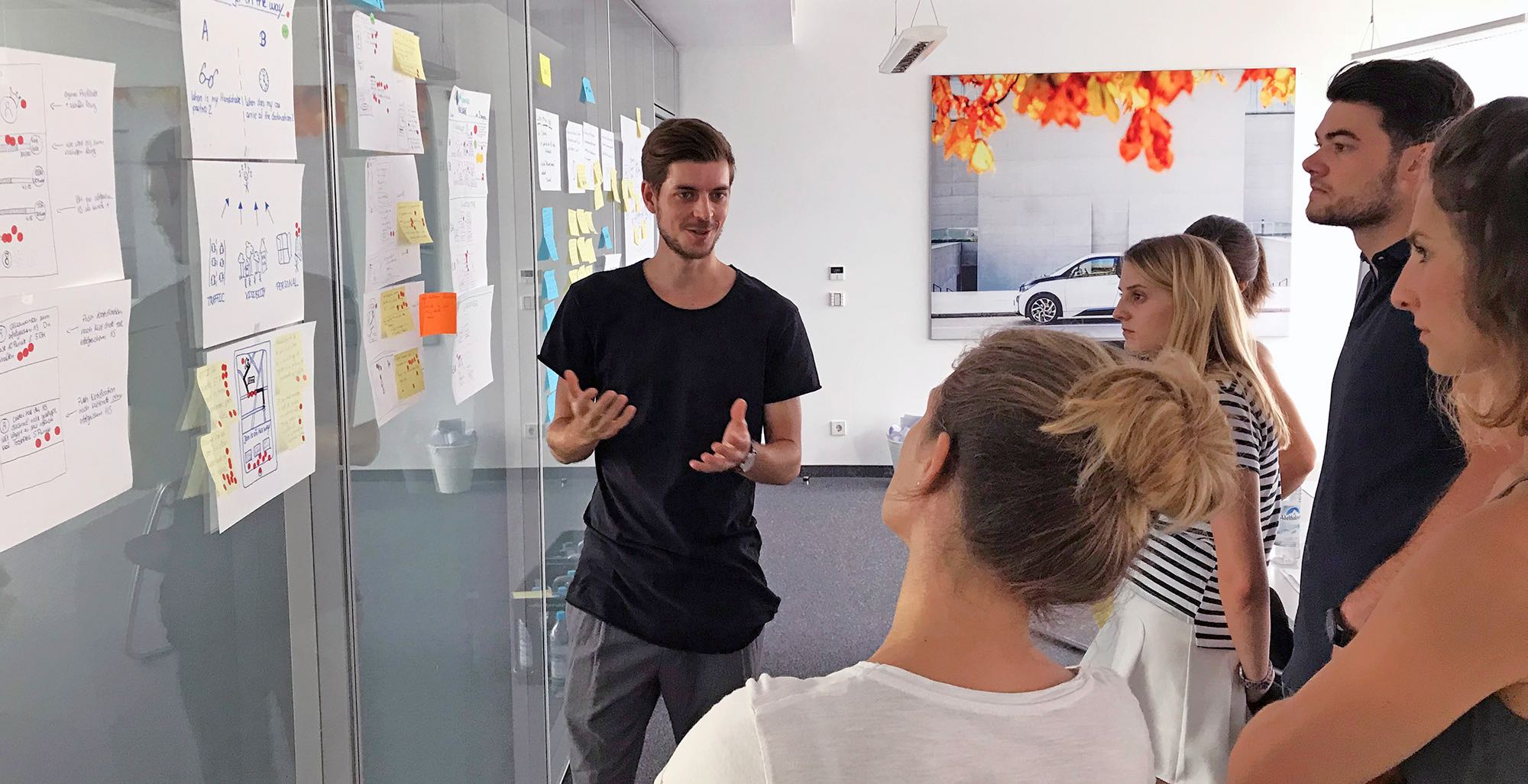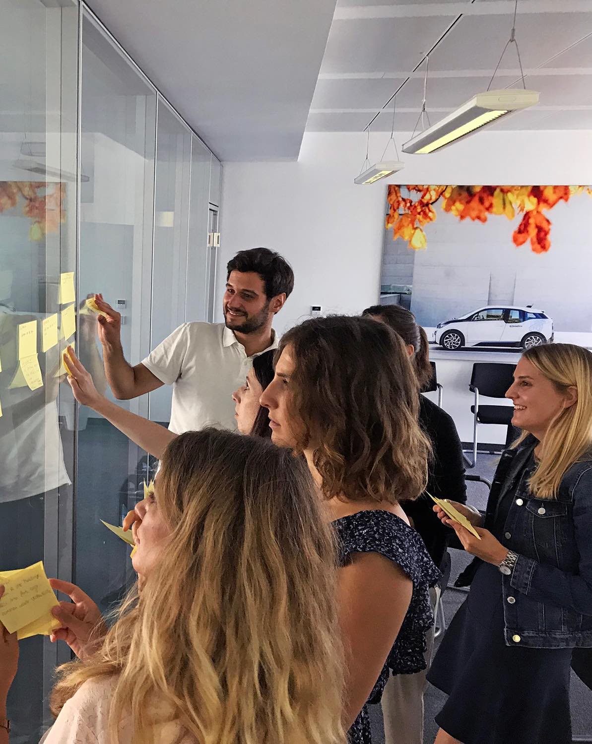 Im Rahmen des CX-Projektes haben wir 7 neue Konzepte entwickelt und schnell aus den Insights des vertesteten Prototypen gelernt. Wir konnten Einblicke gewinnen, wie sich der Übergabeprozess von der Fahrerin zur suchenden Person in Zukunft so reibungslos wie möglich gestalten lässt. Das Sprint-Team bestand aus Produktmanagern und Marketingspezialisten von DriveNow und BMW.